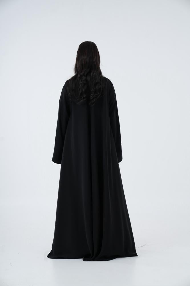 عباية كلوش من قماش كريب كوري باللون الأسود، عملية واساسية لكل امرأة!